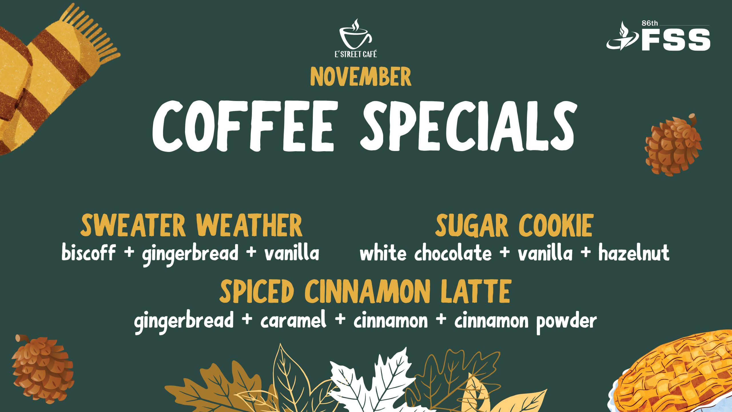 E’Street Café is located inside the E’Club next to Chilis, and we also have a second location inside the USAFE HQ building for you to grab your favorite drinks!