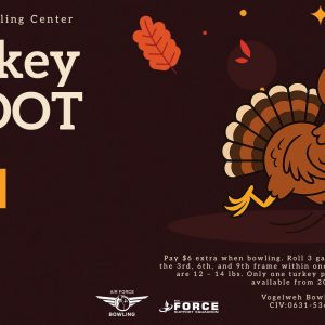 Get ready to roll into the holiday spirit with the Turkey Shoot at the Vogelweh Bowling Center! From 1–21 November, you’ll have the chance to bowl, have fun, and maybe even take home a turkey just in time for Thanksgiving! For just $6 per try, bowl three games and aim for strikes in the 3rd, […]