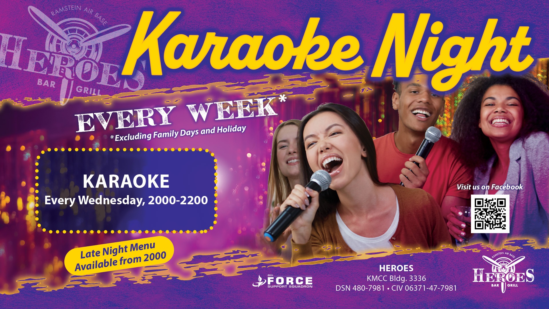 Step into the spotlight and unleash your inner performer at Karaoke Night every Wednesday at Heroes Bar & Grill, located in the KMCC, Bldg. 3336. From 2000 to 2200, the stage is yours—whether you’re a seasoned singer or just looking to have a fun night out with friends. Enjoy a laid-back atmosphere where laughter, music, […] ...
